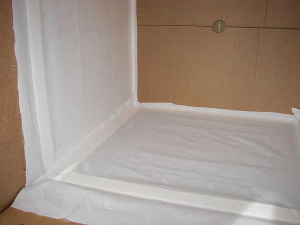 [Foto 1]:: quitar la tapa de la cinta de doble palo. Cuando pones en la tela tire lo mas ajustado posible. Obviamente no quieren sueltos o tienen cualquier arruga. Había envuelto algunos de la cubierta de la cinta de doble palo y frotado sobre la tela para asegurar que el paño quedó estancado en el lugar. después de que pongo en cada lado, recorta la tela sobrante.