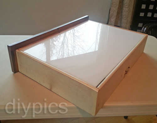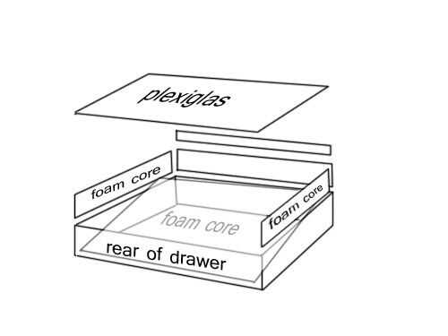 4. una pieza de plexiglás que cabe cómodamente en el cajón (descansará sobre las piezas de la base de espuma y el LED se enciende).