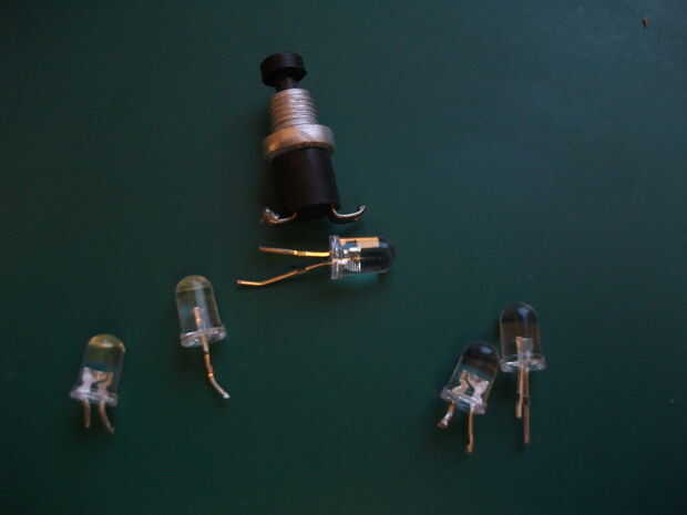 En la foto son componentes nuevos, pero va a utilizar las partes de la primera generación. Las partes también están en la foto. Para facilitar las cosas durante el proceso de construcción, he hecho seguro recortar el cátodo (negativo de la pierna) más corto, al igual que en la naturaleza! (Foto 2)
