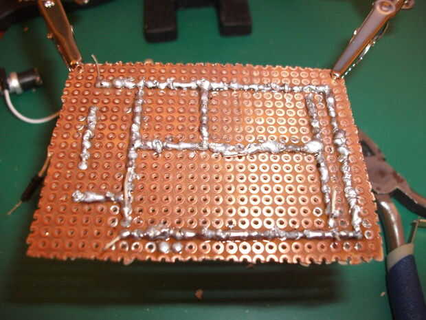 Ahora la soldadura a lo largo de sus conexiones dibujadas. Si prefiere que usted puede simplemente conectar cosas con alambres.