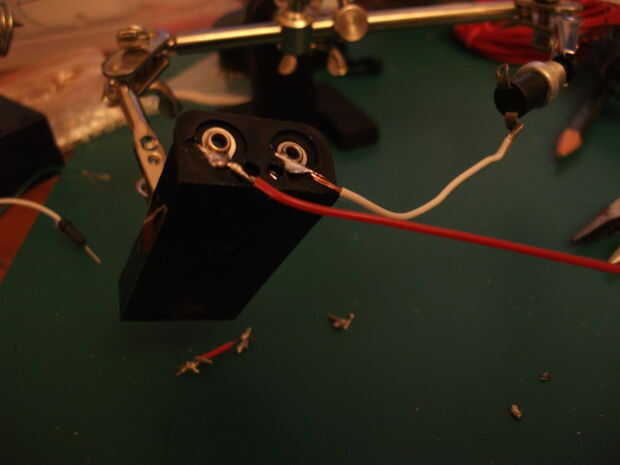 Nota: tuve algunos problemas con mi soporte de la batería. La primera fue que el terminal negativo realmente no estaba conectado al resorte dentro, no sé cuando eso sucedió. El segundo ocurrió cuando resoldered a ese mismo terminal y accidentalmente derritió el plástico o tal vez el metal desplegado demasiado, y la terminal de Broto! Lo pongo en el lugar derritiendo el plástico sobre ella, otro problema causado por mis habilidades de soldaduras.