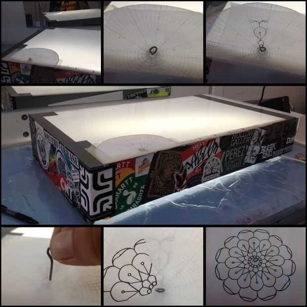 Pegar la plantilla de mandala a la caja colocando el agujero en el centro