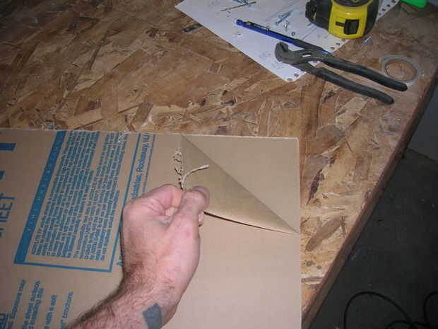 Pele el papel de uno de los lados de uno de los pedazos de la plex.