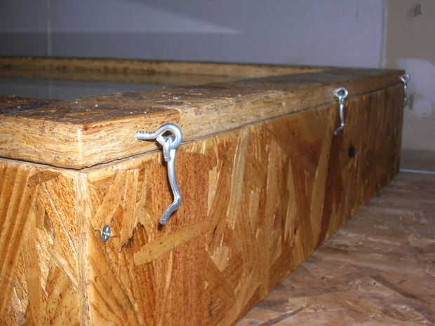 usé tres cositas de cierre de gancho de ojo para mantener mi cierre de cajas, pero son una miríada de opciones que puede utilizar. Estos parecían lo suficientemente seguro, barato y fácil de operar e instalar.