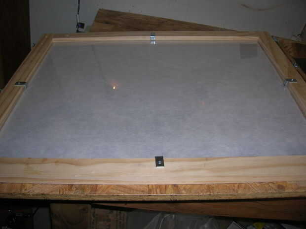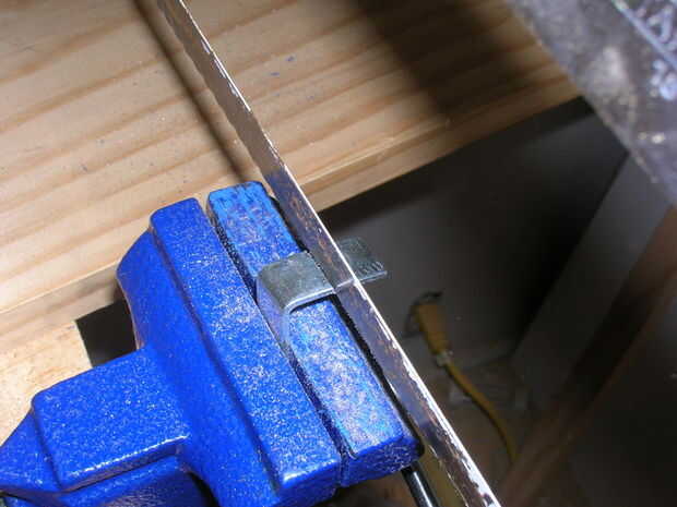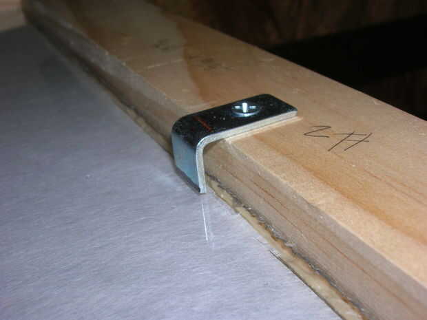 Medí a diferencia de la parte superior de la plex a la parte superior de la madera de pino. había marcada esa medida en el apoyo de la esquina, puse en un vicio y había recortado el tirante con una sierra para metales. entonces jodidos estos aparatos modificados sobre el armazón de pino, con ambas piezas de plex firmemente contra el frente del marco.