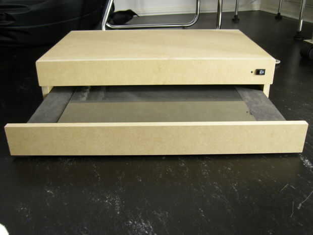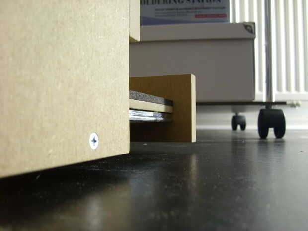 Último el Monte ha ido la caja MDF en la bandeja con tornillos a los lados, la razón por la que haces con los tornillos es que cuando una lámpara se rompe puede sustituir.
