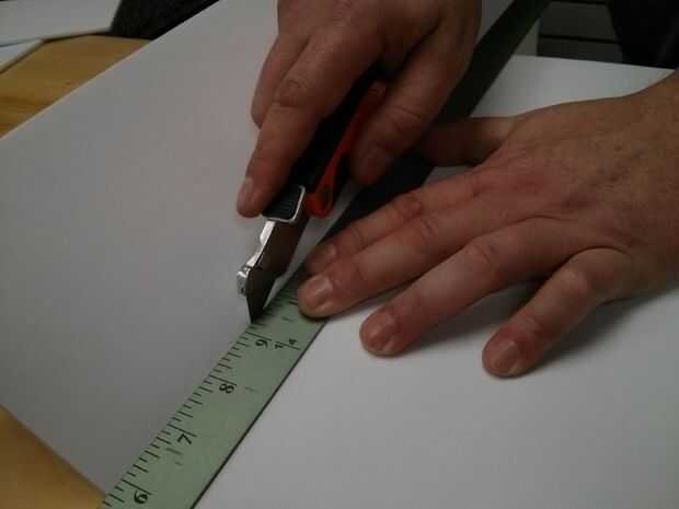 El fantast tablero de base de espuma, que no sea su rigidez de trabajo, es que puede cortar muy fácilmente dejando suaves líneas rectas. El proceso es sencillo. Base de la espuma utiliza una capa de espuma de poliestireno intercalada entre dos hojas de cartulina. Una vez que haya marcado su posición del corte, con su cuchillo y un borde recto, marcar una línea a través de la cartulina en un lado de la placa. Luego voltee la placa FC y marque la ubicación de la partitura en el lado opuesto. Puede utilizar los bordes de su marcador para encontrar la línea exacta. A continuación pone su regla justo al borde de la partitura y empezar levantando un borde hasta que el tablero es de 90 grados. La espuma debe 'pop' exactamente a lo largo de la costura dejando un buen borde liso. Por último, utilizando el borde de la regla, puntuación por la cartulina en el lado restante y las piezas se separará muy bien.