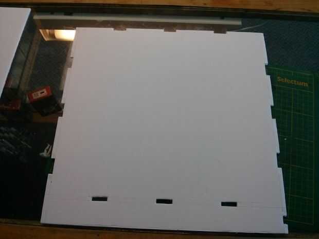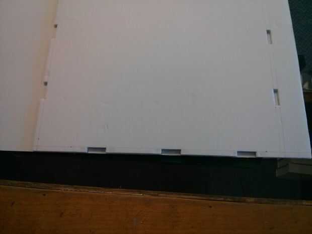 Usted necesitará hacer empalmes en 1.5" desde el borde inferior para apoyar la cubierta, que puede ser un poco más complicada que cortar cuidadosamente la mortaja. La técnica que utilicé fue marcar la forma de un lado, luego utilizando un pin, asomó las cuatro esquinas limpiamente por el otro lado, permitiéndome Dale la vuelta y reflejan exactamente los cortes. Después, es bastante simple solo empujar el material hacia fuera dejando una mortaja limpio agradable.