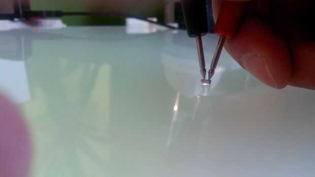 En el plomo de cada LED que necesita soldar 2 cables. Ser rápido con la pistola de soldar los LEDs son pequeños y si esperas demasiado tiempo se queman. Si usted no parece manejar un empalme y los segundos son TIC-TAC, parada el esfuerzo deje enfriar el led abajo y continúan. Pero también, quemar un par de los LEDs no es tal molestia. como usted puede cortar y pegar los nuevos. De acrílico raspar con un cuchillo o una dremel y pegue una nueva.