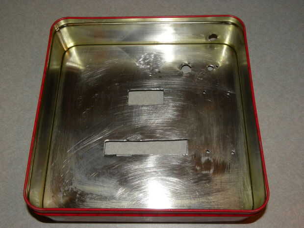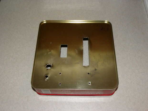 Perfore los orificios para la toma de alimentación de DC, tornillos, interruptor, potenciómetro y disipadores de calor.