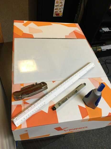 -una hoja de poliestireno o de acrílico que no es totalmente transparente de 5mm de espesor (tamaño es su opción, mina era slichtly más grande que una página A4, calculé 10mm adicional a cada lado