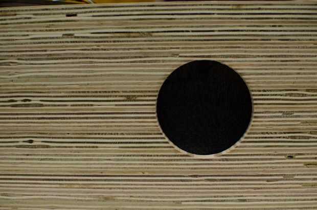 Hice un poco de experimentación en pedazos de desecho para determinar qué agujeros que podía perforar sin partir las tablas. Para los LEDs, simplemente perforé un agujero con una broca de 5mm sharp. Para el botón, perforé un orificio piloto de 5mm antes de ampliación para acomodar el cuerpo del botón. Perforar el lado liso de la madera debe dejar un agujero de aspecto limpiador en el exterior de perforación a través de la espalda. Utilizar pegamento caliente para fijar estos componentes. También he añadido algunas arandelas sobre los agujeros para los LEDs de manera que la moldura metálica del botón de las luces.