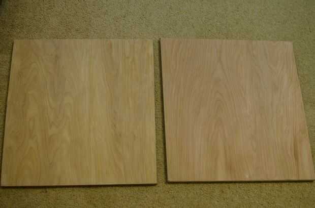 Los paneles fueron cortados con una sierra circular. Lijar el exterior rápidamente antes de aplicar la cera otra vez. La veta estaba cubierta con ribete de hierro en chapa de caoba en los lados expuestos. Para hacer esto, coloqué una sección de la chapa (que era más grande que podría cubrir la superficie) en el borde del panel y presiona firmemente en él con una plancha en medio - alto. He recortado el exceso con un cuchillo de la manía y utiliza un bloque de lijado en ángulo para suavizar los bordes. Hay brocas que permiten recortar la chapa como si tienes un router.