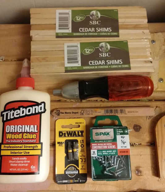 3. tornillos de #6 x 5/8 pulgadas Spax (iniciado con cabezas de cam pero terminado con cabezas planas)