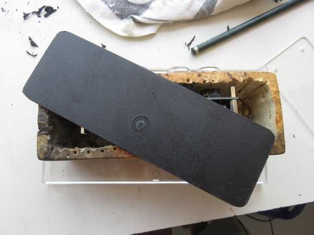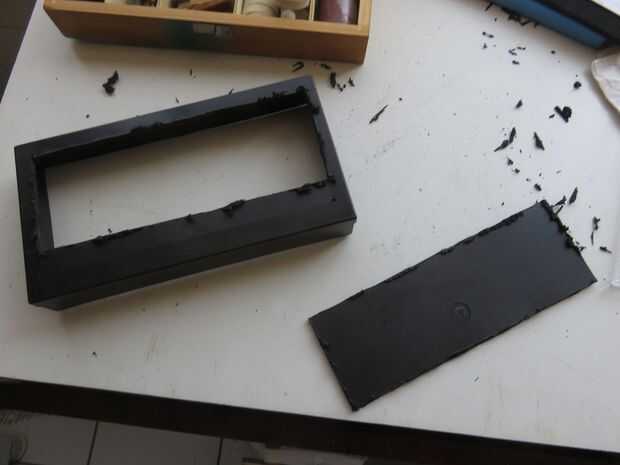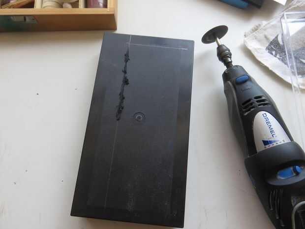 La pieza de plástico vino de una vieja caja de plástico con aerógrafo. Utilizando la dremel cortador número #456 fue muy fácil cortar el plástico en la forma deseada. Abre unos agujeros para la ventilación.