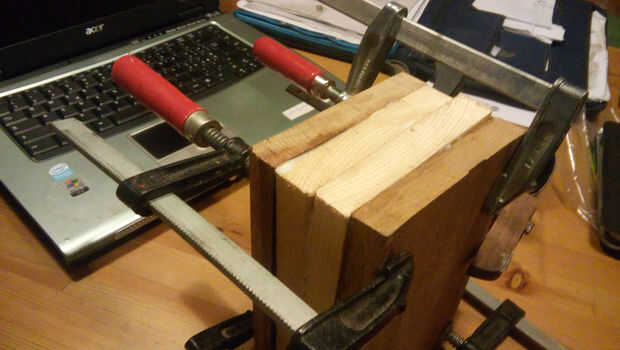 Es todo madera reciclada, que es las piezas rotas de los trabajos anteriores, que pegué como veis en la foto.