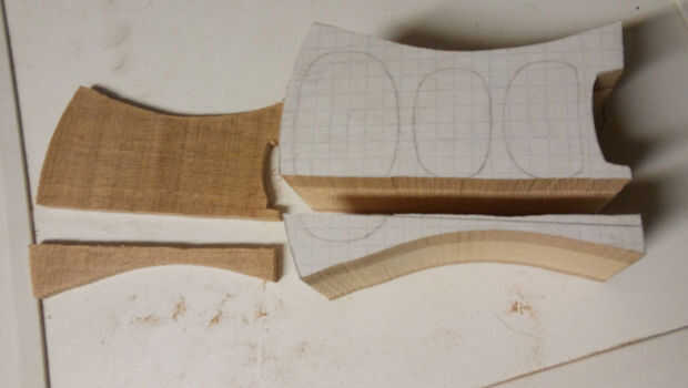Ya que mi sierra de cinta puede cortar un espesor máximo de 80 mm y la pieza tiene una anchura de unos 120 mm tuve que recurrir a un truco... la caja vertical para luego cortar la parte inferior del corte.