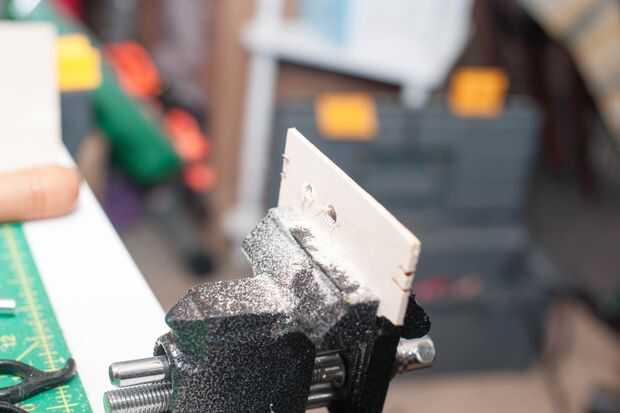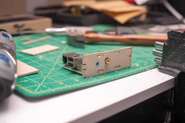 Hice el primer agujero para el componente de vídeo a mano y salió muy desigual, por lo que para el componente de Audio taladrar el agujero que hizo un corte mucho más bonito y agujero simétrico pero ten cuidado con desgarro de la madera en la parte trasera (que es dentro de la caja para mí).