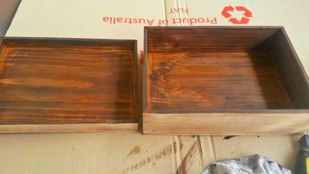 Permití la mancha establecer durante otros 5 minutos antes de la capa exterior de las cajas, siguiendo el mismo proceso utilizado en el interior.