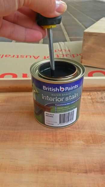 Una vez que el cuadro fue limpiar comencé el proceso de tinción. Decidí usar una mancha interior a base de agua con este proyecto debido a las toxinas menos en él. También tiene un tiempo de secado más rápido y es casi inodoro!