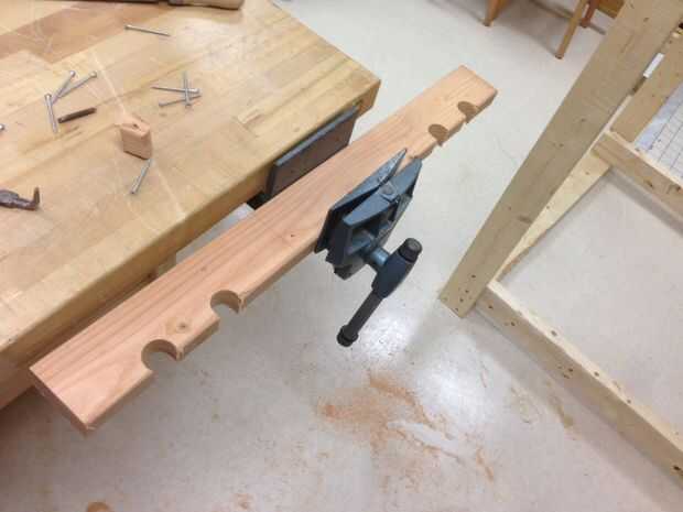 36 pulgadas dos por cuatro en vice apretón de la abrazadera. Luego Mida y marque cada 4 pulgadas de los extremos. Hacer dos marcas en cada lado.