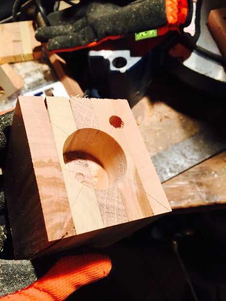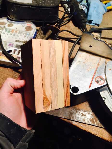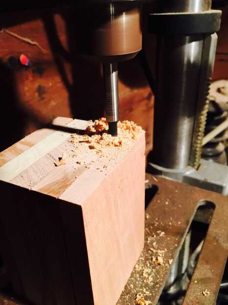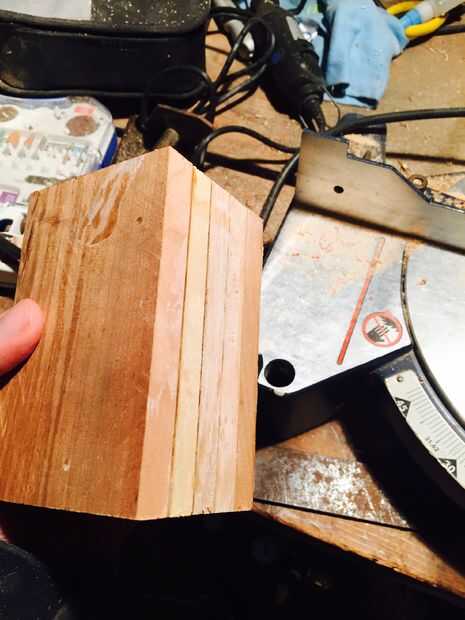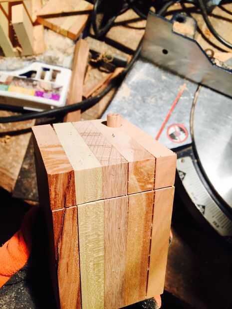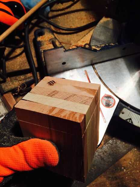 corté las tablas así que había un corte limpio en todos los lados. Después de tener el cuadro del tamaño que desee, utilice una broca de 3/8 para perforar el agujero para el pasador de madera. Luego se puede cortar para la tapa. Cortar 3/4 en off para la tapa. Después de que la tapa está apagado, solía un poco de 1 3/8 fostner perfore el centro de la caja para el anillo. Cuando todo lo que es hecho, armar la caja e Inserte el pasador, cortado a la medida y el cuadro se hace. Le dan un spray con el mismo poli que usaste para el anillo y eres bueno para ir.
