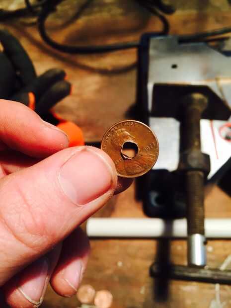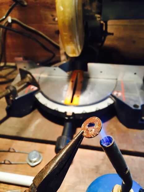 Primero usé un taladro para perforar un pequeño agujero en el centro de la moneda. Luego agarrarlo con una pinza y empezar a calentar con un soplete pequeño. Debe hacer este paso si no desea que el céntimo para romper.