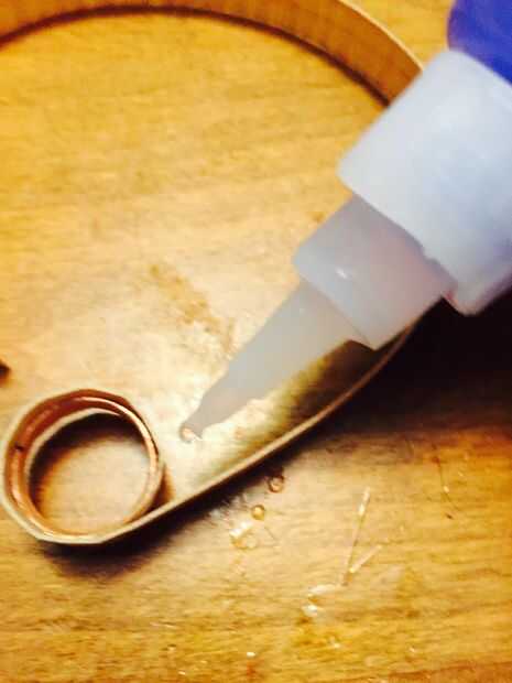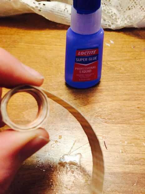 Tan pronto como usted está seguro que se pega al cobre, puede comenzar a enrollar el resto del anillo. Coloque un par de gotas de pegamento y lentamente comienzan a envolver la chapa alrededor. Usted conseguirá algunos dedos pegajosos de hacer esto, pero sucede. Sólo trate de no pegar los dedos entre sí o con el anillo.