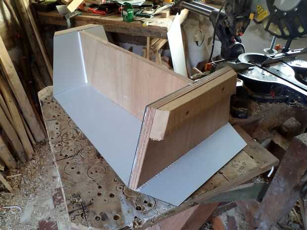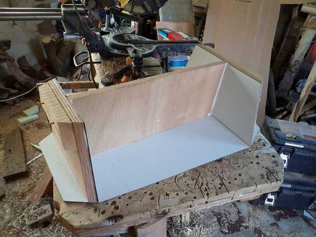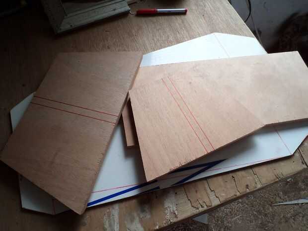 Madera contrachapada (16mm de espesor) bien me pareció (un poco menos haven estado bien también), así que después de la forma de la placa de tierra que comencé a formar los tres paneles del esqueleto.