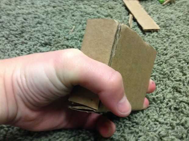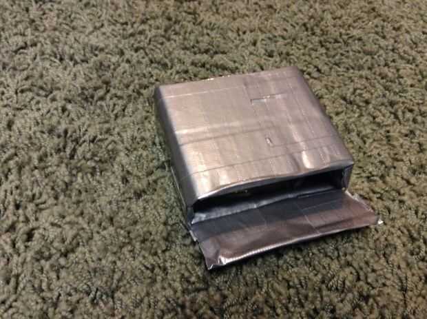 En este paso, arrastre una tijeras a través de las áreas que se deben doblar, que se muestran en el paso anterior. Esto ayudará a romper el cartón en el área que se desea doblar. Luego doblar la caja juntos un par de veces para conseguir está listo. Después de eso, desplegarlo y cubrir de cinta aislante.