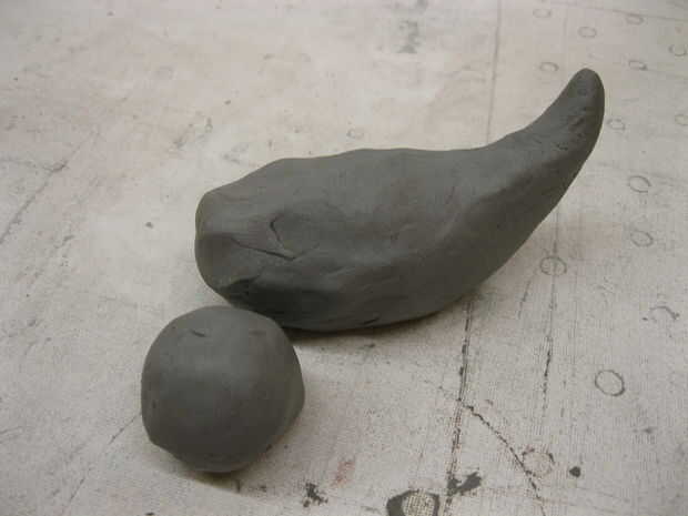 crear una pieza para colocar encima de la caja de música. Decidí hacer un pájaro. Primero forma el cuerpo y la cabeza fuera de la arcilla