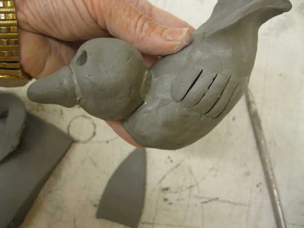 luego hice pequeñas indentaciones en la arcilla de plumas.