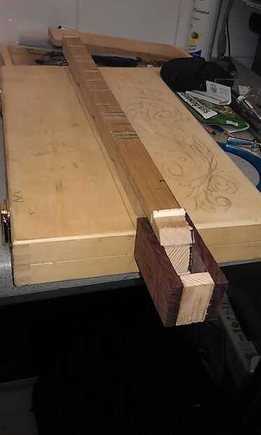 Su realmente genial hacer este instrumento, subiré más fotos mientras me voy mantener ll todos actualizada la escala de la caja de música es 17 pulgadas. la caja es de 15 pulgadas por 8,5 pulgadas.