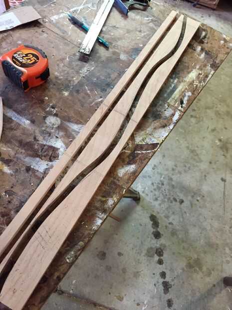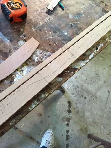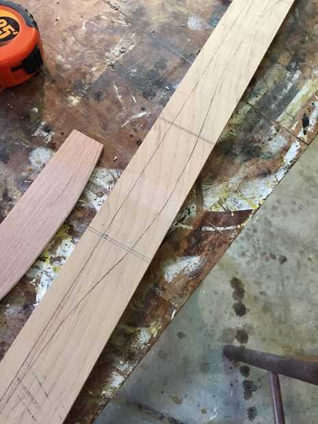La primera imagen muestra la disposición de la muestra. Marqué una línea donde copio la parte superior de la caja. También se muestra el patrón de la 'onda' que intentaría seguir con mi sierra, y donde corté los lados.
