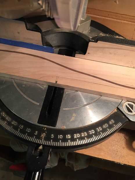 Encontré que en mi tronzadora es más fácil de todo cortado a la longitud correcta, luego se corta el inglete para las esquinas.