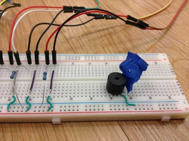 - ¿Suena como a caca? (intente poner alguna cinta en la parte superior de la piezo y meter un agujero en él así que puede oscilar correctamente. Esto debería hacer el sonido menos granoso.)