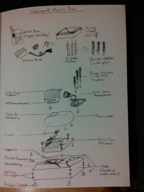 -Trazar esquema de mecanismo de música y funda de plástico.