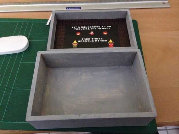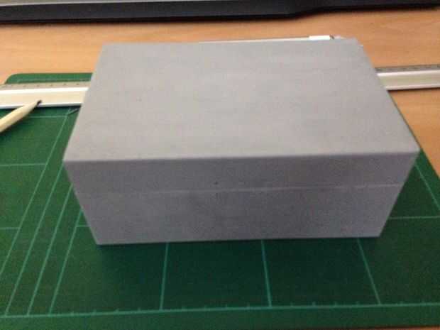 Ahora que la caja es pintada y las pegatinas diseñan e impresión el cuadro está listos para ser elaborado.