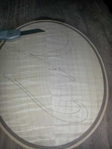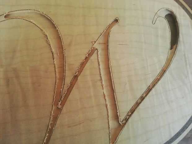 Una vez finalizado el W, solía doble cinta de lado para temporalmente pegarlo donde quieras y trazada alrededor del exterior con un cuchillo afilado. Después de marcar los bordes, utilicé lápiz para oscurecer las líneas del cuchillo por lo que pude ver bien. Se utilizó el mismo dremel con una pequeñita 1/8" recta de bits para eliminar los residuos como cerca de la línea ya me atreví a ir con un router. Hice el corte en dos pasadas. El resto de los residuos fue quitado usando un taladro y cinceles. Este proceso toma paciencia y una mano firme.