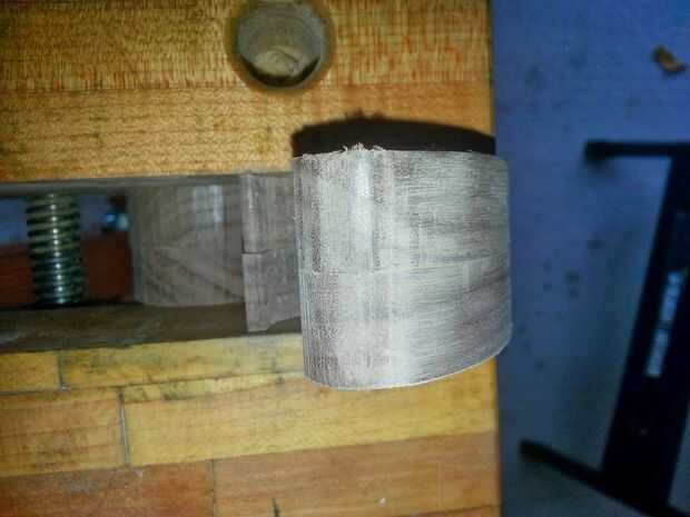 Los bordes eran ásperos de la hoja de Sierra de cinta sujeta en un tornillo de banco y utilizar un raspador de tarjeta, escofina y papel de lija envuelto alrededor de un pasador para suavizar el borde. Es importante comprobar para Plaza también para asegurarse de que no poner demasiada cantidad de un bisel.