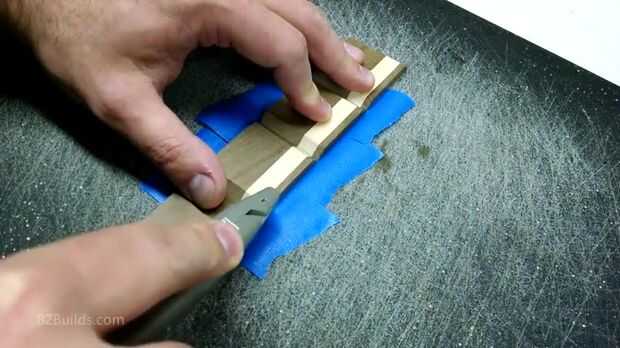 Haber visto suficiente hacer caja en YouTube, he aprendido que una buena manera de conseguir sus cortes a inglete pegados para arriba es utilizar cinta de pintor azul en el exterior de las articulaciones para mantenerlos juntos.