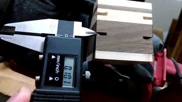 Después de cortar las ranuras de las ranuras, medí el ancho de las ranuras cortadas por mi sierra de mesa. Eran unos 0,100" de ancho.