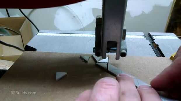 Una vez que el aluminio hasta el grosor adecuado, córtela en triángulos pequeños que se utilizarán para las ranuras.