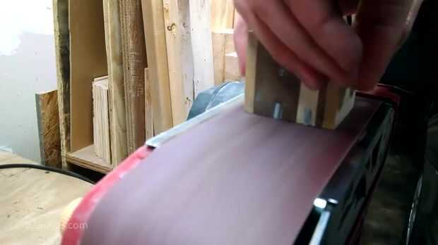 Una vez seco, el exceso de aluminio puede cortarse con la sierra. El aluminio restante fue luego lijar áspero con la lijadora de banda y luego más suave con grano 220 en la lijadora de Palma.