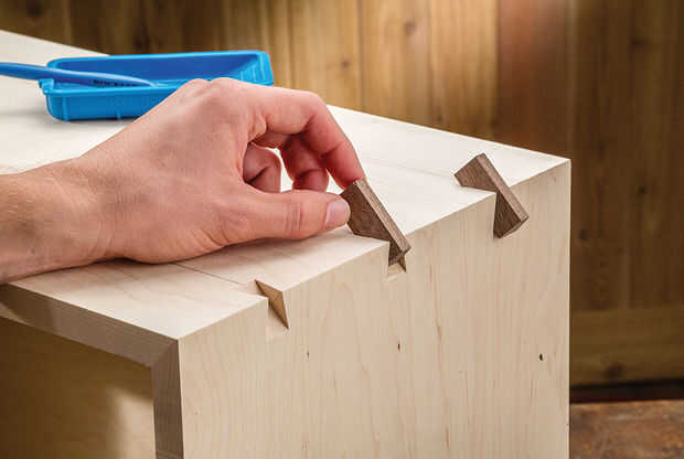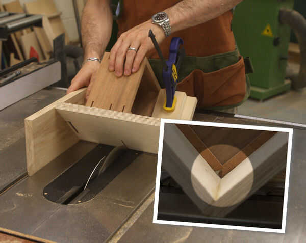 Cortar la madera que desea utilizar para los inlays y pegamento y fijar en los cortes de ranura.