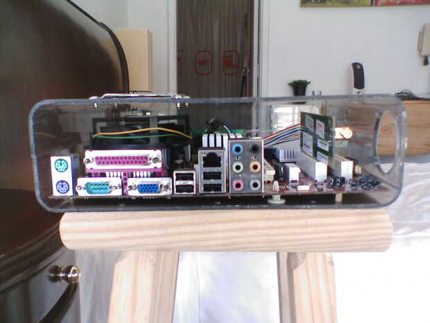 Corte el exactamente el espacio para el panel de la Motherboard, Tarjeta madre para las conexiones.