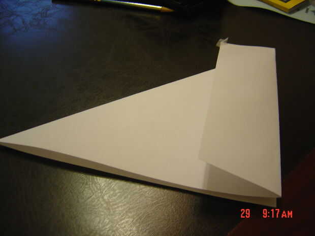 [Foto 3] Voltee todo el asunto y doblar el rectángulo que no está incluido en la parte posterior del triángulo como se muestra.