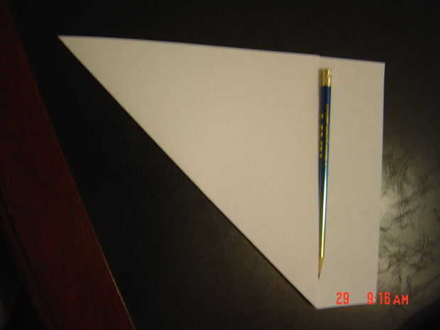 [Foto 2] Doblez de cualquier ángulo y para hacer un triángulo. coincidir los bordes y el pliegue. (El lápiz muestra el borde del papel... era difícil ver la luz)