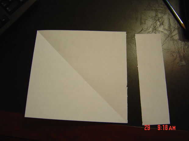 [Foto 1] Comience con una hoja normal de papel. No importa lo grande que es, como tiene ángulos rectos.