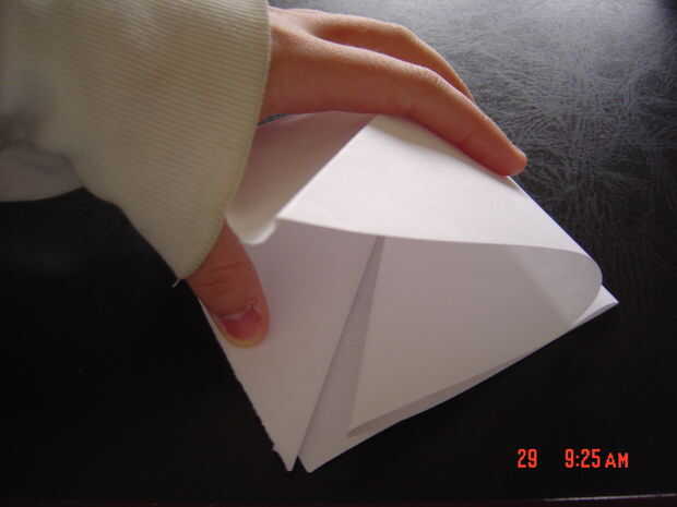 [Foto 2] Ahora doblar este triángulo por la mitad en un triángulo más pequeño.